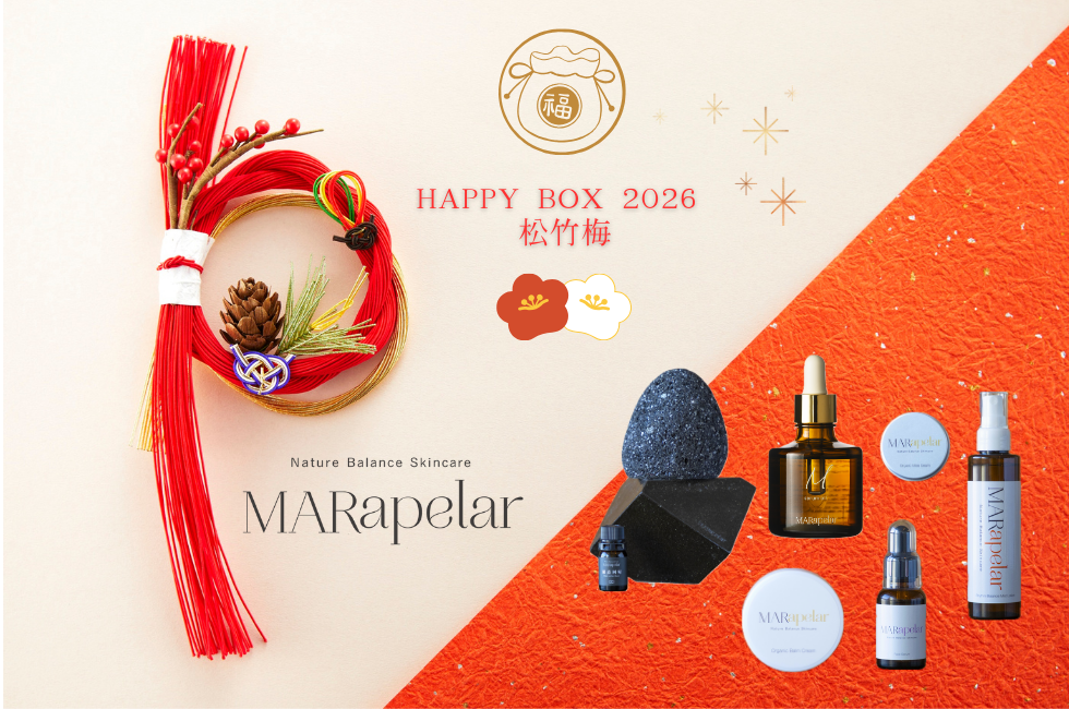 マールアペラル待望の新商品「Mセラムオイル」の誕生を記念して、新年のスタートをやさしく彩る、特別な福袋(HAPPY BOX)をご用意しました。2026年のはじまりにふさわしく、Mセラムオイルをベースにマールアペラル定番の人気アイテムを厳選!